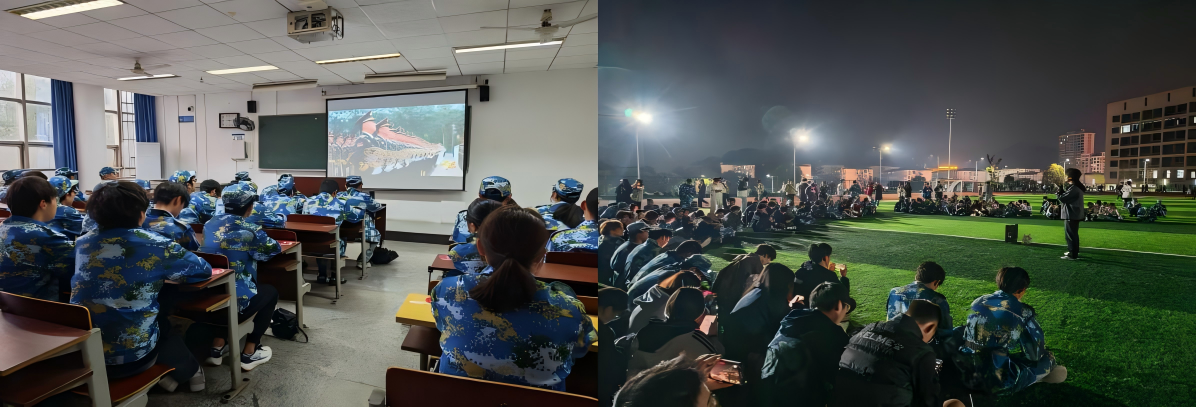 军训期间,除了正常的军事训练外,学院还组织了一系列丰富多彩的文体活动,如新生内务整理、新生夜训才艺展示、观看强国强军系列纪录片等活动,这些活动丰富了学生们的军训生活,同时也培植了学生们的爱国情怀。