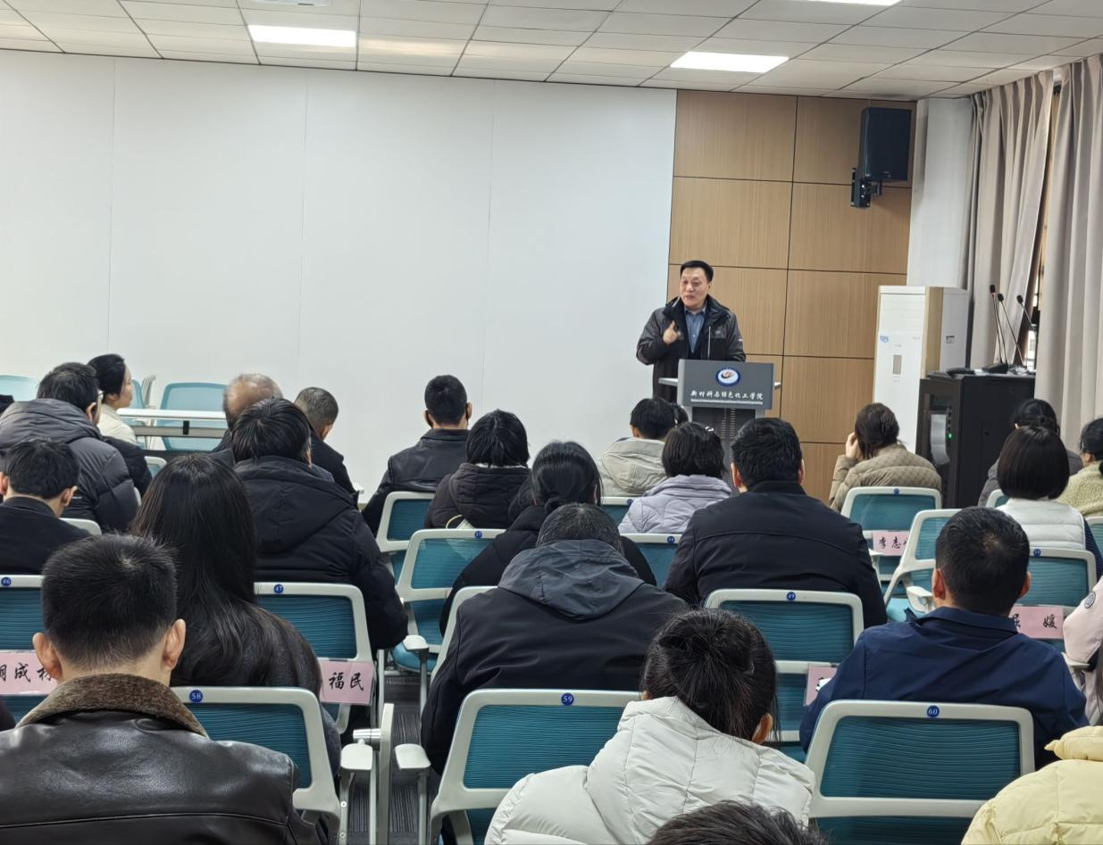 岁末收官,谋篇布局。12月29日,新材料与绿色化工学院在K3-412会议室召开2025年度工作总结大会,这也是学院全年最后一次全体教师例会。学院领导班子、全体教职工参会,会议全面复盘本年度各项工作成效,凝聚发展共识,为2026年工作开篇定向。