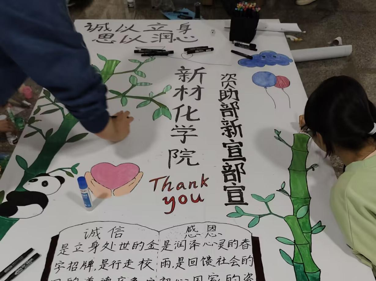为进一步培育崇德向善的校园风尚,引导广大青年学生涵养诚信品格、厚植感恩情怀,新材料与绿色化工学院新闻传媒中心与资助部于3月29日联合推出“诚以立身,恩以润心”线上主题活动,面向全院学生开放报名,吸引了众多学子积极参与、踊跃响应。